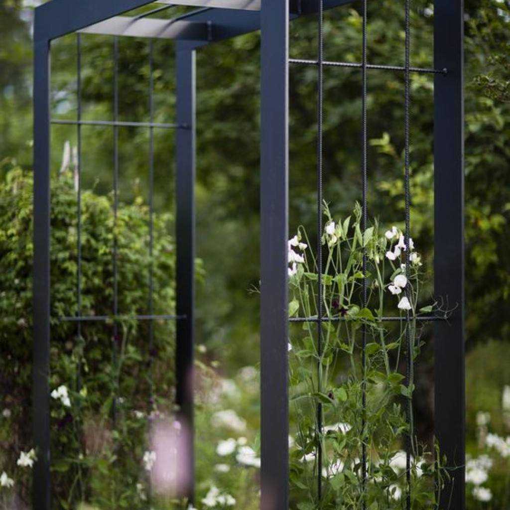 Перголу окрашивают в необходимый цвет и подвязывают растение к решетке