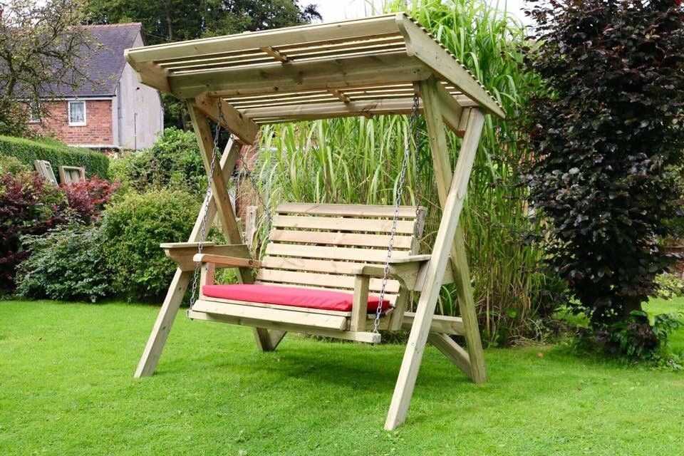 деревянные качели экологичны, они органично впишутся в ландшафт сада.
