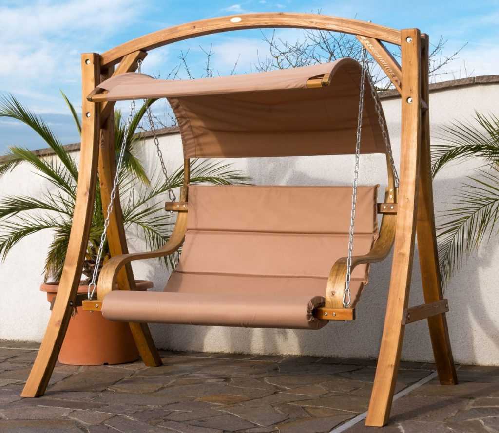 каркас деревянных качелей будет оптимальным для установки. Ведь его форма