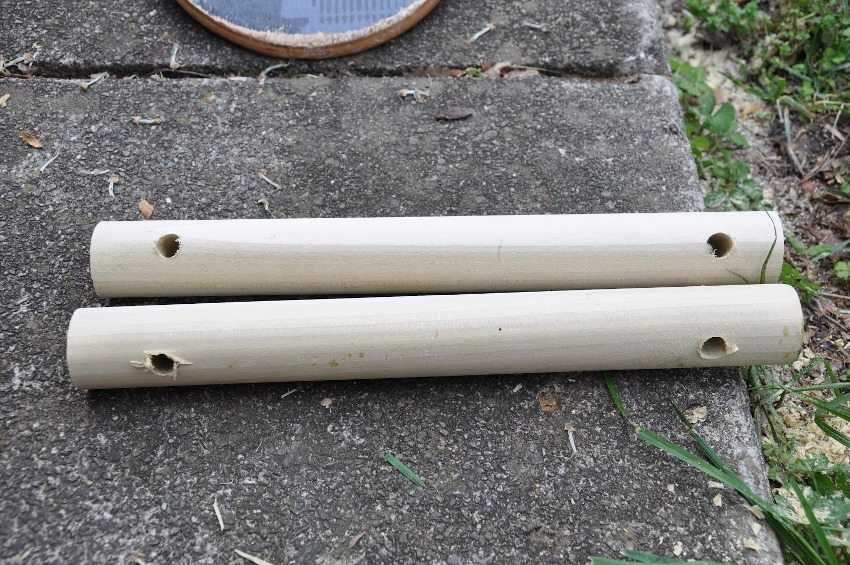 Детские качели из скейтборда, шаг 3: подготовка деревянных брусков круглого сечения для подлокотников.