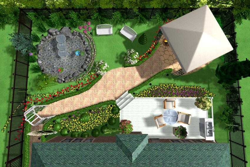 Не стоит прокладывать «проспект» на стандартных шести сотках – вполне достаточно обычной тропинки шириной 0,4-0,45 м. Этого хватит для прохода одного человека. Если же участок большой, с беседками, бассейном, зоной отдыха – лучше сделать тропки пошире, выложив по краям красивые бордюры.