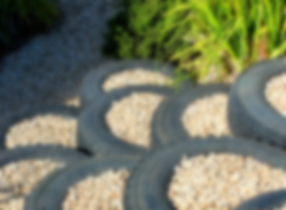 Резину от покрышек можно нарезать на куски квадратной или прямоугольной формы и выложить из них дорожку. Основанием для крепления послужит смесь из ацетона и плиточного клея