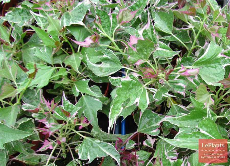 Многолетняя лиана с высоко декоративными цветками и листьями, похожими на кленовые, образует клубни. Особенно популярны сорта с пурпурными листьями, например, Sweet Georgia.