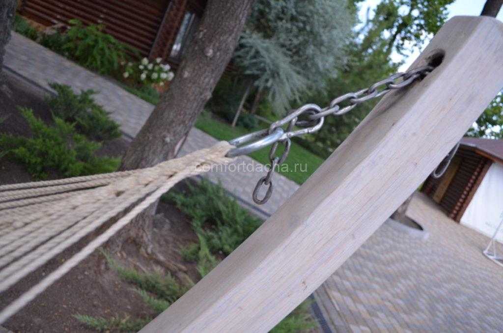 Соответственно, если опорами выступают деревья, то в такой ситуации важно учитывать весовую категорию человека и предусмотреть специальные крепления, которые будут препятствовать повреждению ствола
