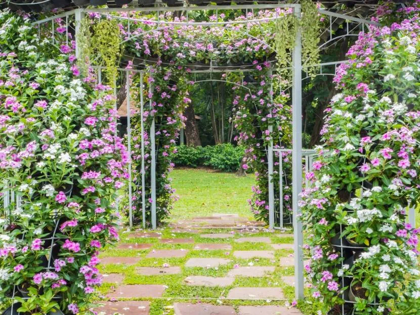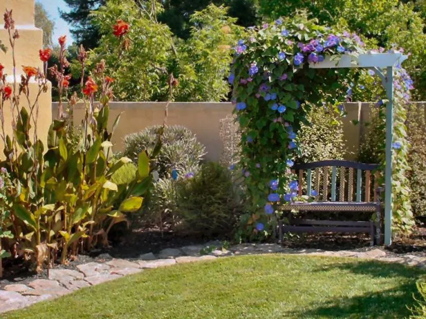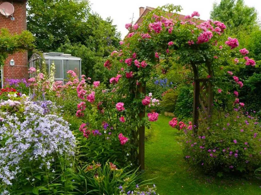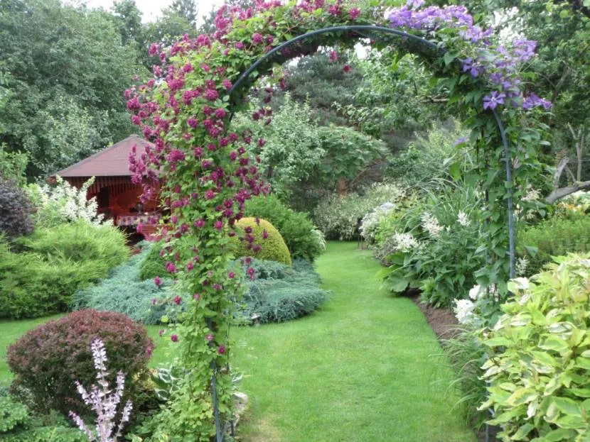 - арка или беседка, полукругом увитая цветущим растением, создают в саду неповторимый романтичный вид;