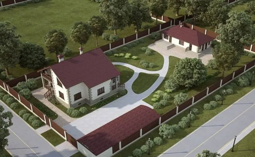 Следует уделить внимание дорожкам и забору вокруг фазенды