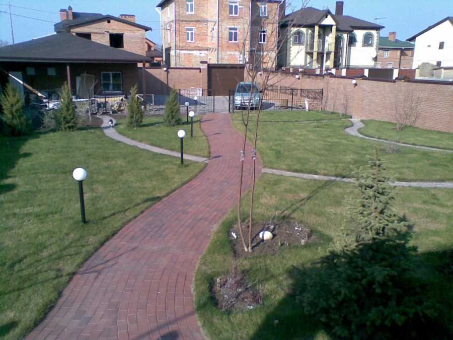 Интересное сочетание образует плитка и газон, когда часть газона обрамляется плиткой или в центре дорожки или площадки создается небольшая клумба. Это элемент ландшафтного дизайна, используя который, вы сделаете свой участок более эстетически привлекательным.