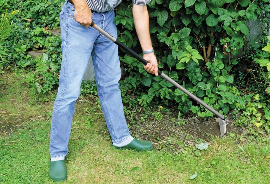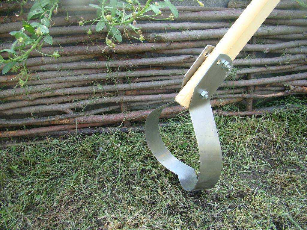 Этот инвентарь необходим для прополки сорняков и рыхления почвы. Насадка мотыги, как правило, может быть полукруглой или прямоугольной.