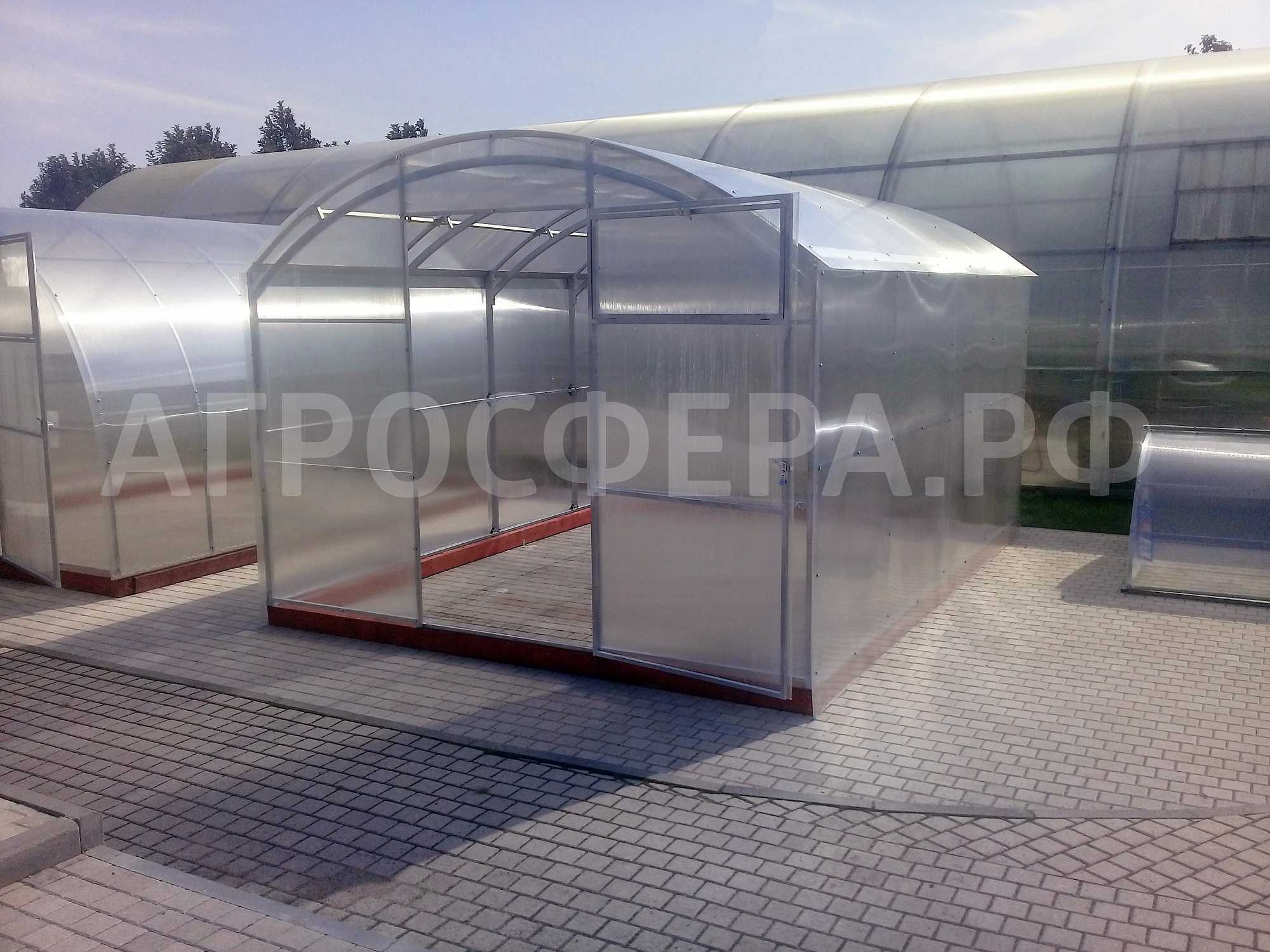 Теплица агросфера плюс характеризуется оцинкованным каркасом и поликарбонатным покрытием. Входящие в комплект стальные дуги имеют толщину стенок 0,8/1 мм, а прочие металлические элементы, типа торца, форточек и дверей – 1 мм. Габаритные параметры данной модели полностью совпадают с категорией стандарт. Ввиду того, что друг от друга цельные дуги удалены на небольшое расстояние в 67 см, усиленный каркас может выдержать большие нагрузки. Вариант данной модификации позволяет внести дополнения в виде автоматического полива капельного типа, вентиляции и наборов для осуществления подвязки растений; Модель Богатырь характеризуется каркасом из широкой трубы и 95-сантиметровым пролетом от одной дуги к другой и стандартными габаритными параметрами. Конструкция укомплектована двумя дверями и может быть дополнена автоматикой для полива и проветривания. У каркаса агросфера Богатырь высока степень устойчивости к снеговым нагрузкам (слой в 50 см); Теплица Агросфера Мини характеризуется низким ценовым уровнем и меньшими размерами (1,64/1,66/4(6,8)). Комплект содержит дуги, удаленные на расстоянии 1метра, 1 дверь и расположенную напротив форточку. В качестве покрытия выступает сотовый поликарбонат; У модели Агросфера Титан повышенная степень надежности. Комплект имеет стандартный набор в виде торца, форточек и дверей, для изготовления которых используется стальная труба. Высокая прочность каркаса позволяет принять нагрузку на крышу из поликарбоната в 60-сантиметровый слой снега.
