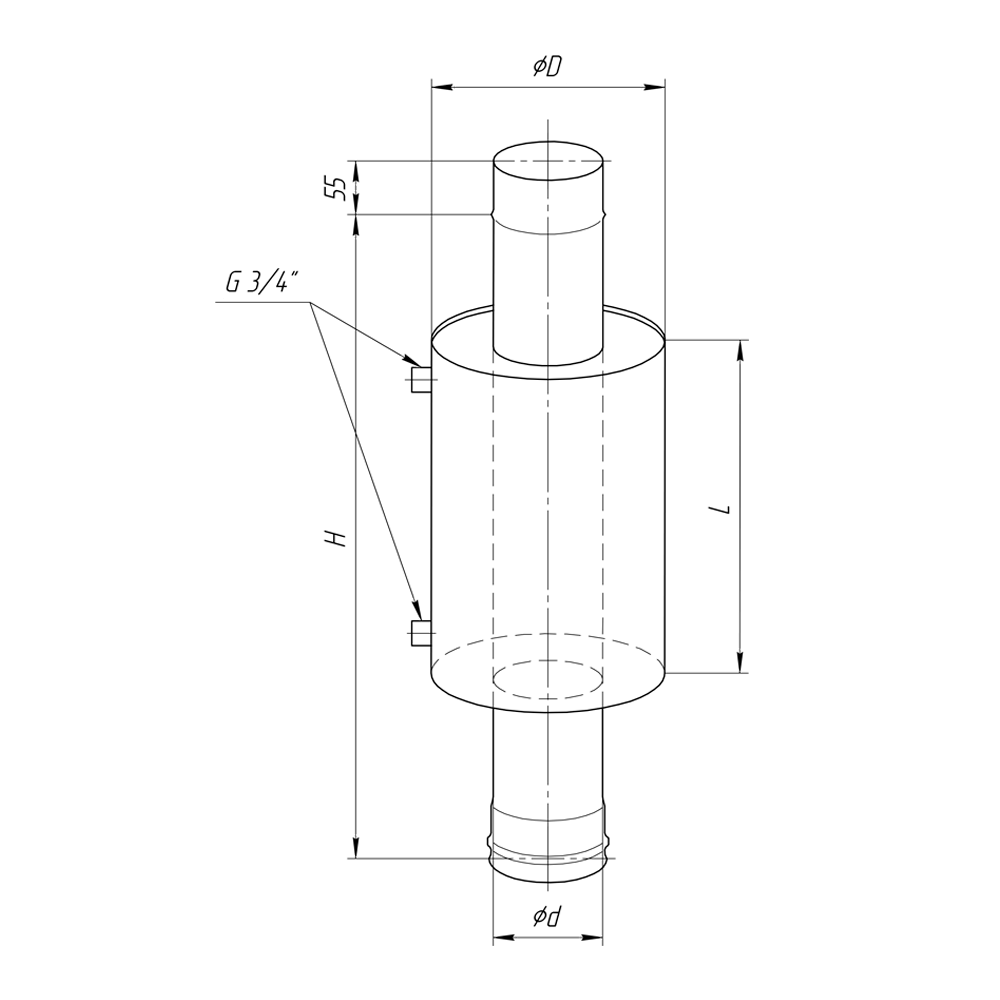 1. Емкость самоварного типа – устанавливается на выходной патрубок дымохода. Нагрев происходит за счет тепла уходящих в трубу дымовых газов. К штуцеру на дне бака подсоединяется кран для разбора горячей воды. Если у вас нет помывочной, то данный вариант будет отличным решением для нагрева