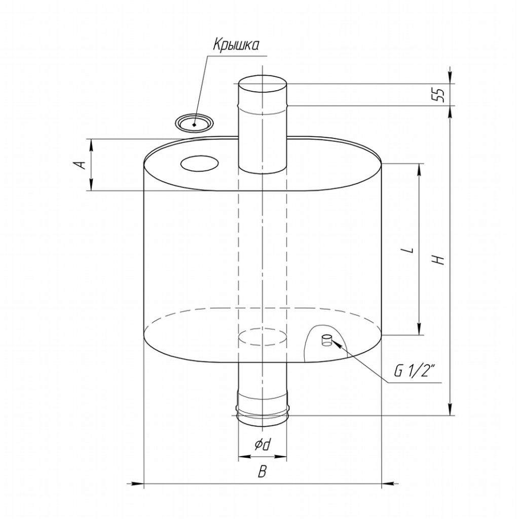 При монтаже важно учесть, что емкость не должна доходить до верха трубы минимум на 25 см.