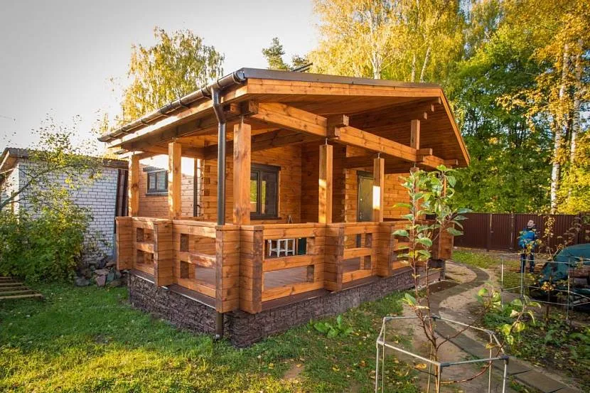 Красивые бани снаружи обязательно снабжаются интересной деталью. Здесь это — широкий козырек над террасой и застекленная веранда, на которой приятно отдохнуть в прохладный день.Источник decohoms.com
