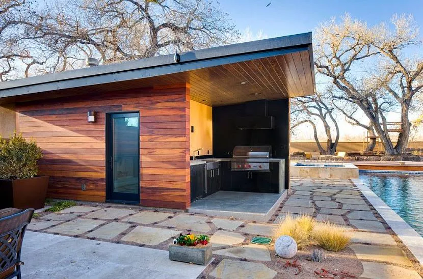 К вопросам отдыха здесь подходят серьезно: бассейн, терраса и зона барбекю.Источник houzz.com