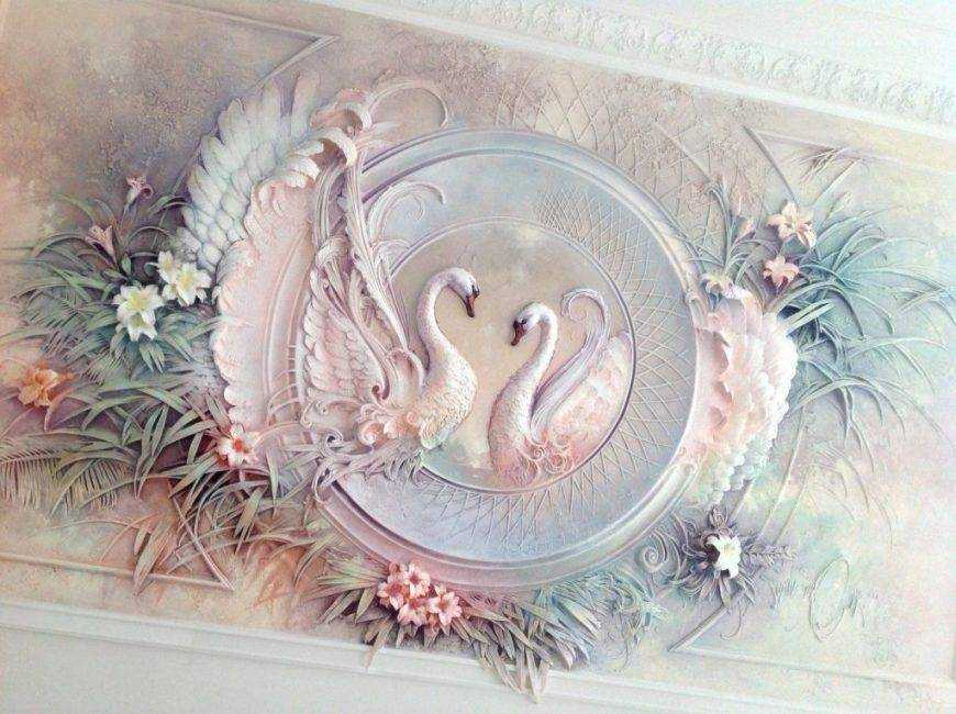 В рококо и барокко должны присутствовать легкие и пышные формы, поэтому оптимальным вариантом станет создание на стенах объемного изображения и асимметрии. Поскольку все элементы будущей композиции габаритные, и их непросто будет закрепить к стене, то нужно лепить каждую деталь по отдельности на стене, а потом уже заделать швы и все покрасить. Для помещений, оформленных в стиле арт-деко, нужно выбирать изящные гипсовые элементы, окрашенные во что-то пестрое и яркое.