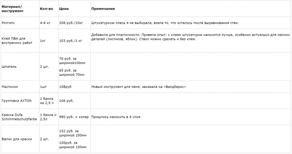 Итак, для создания барельефа на стене высотой 2,7 м и шириной 3,4 мне понадобилось на удивление немного материала, потому что стена была уже выровнена гипсовой штукатуркой.