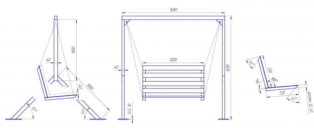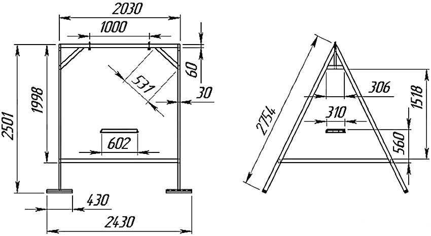 Чертеж качели из профильной трубы с размерами