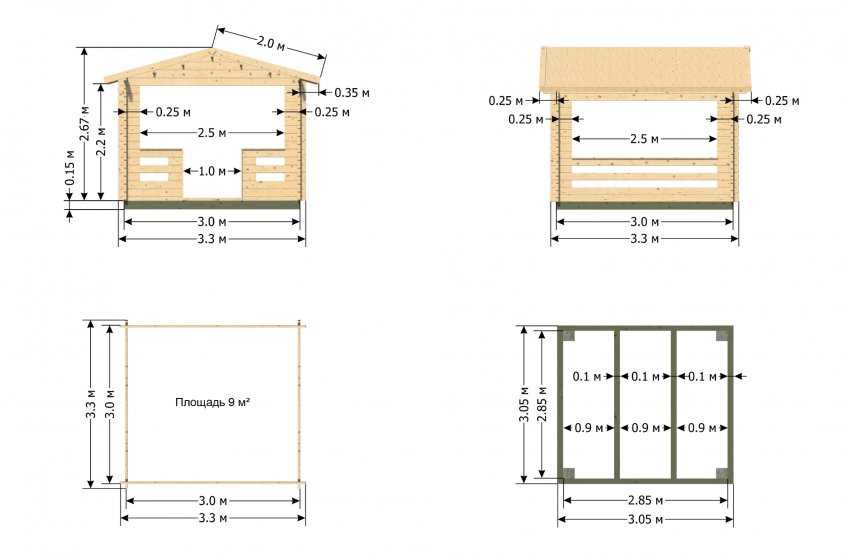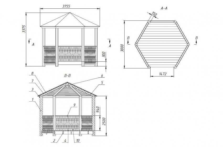 Рассмотрим на примере составление чертежа для каркасной беседки 3х3, а также произведем расчеты необходимого количества строительного материала.