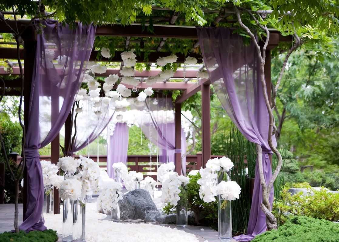 - японская беседка — квадратные конструкции со стенами-перголами, без дверей, с четырьмя входами, двухуровневая кровля выполнена в японском стиле;