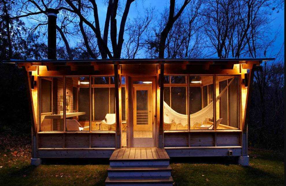 - панорамная — три глухие стены, а четвертая стена — с витражным остеклением и выходом на настил;