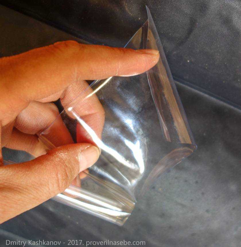 Также понадобится полоска ПВХ, минимум, на пару сантиметров больше области прорыва. Чашковый пакет, как правило, имеет запас по окружности.