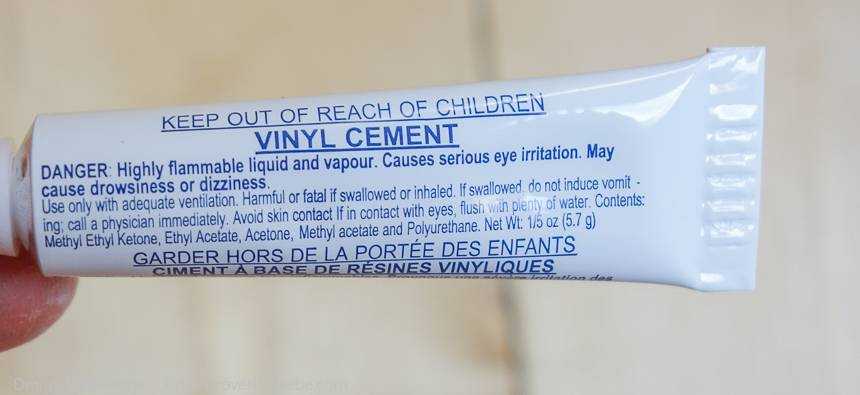 Еще один способ, как заклеить бассейн надувной в домашних условиях, – это фиксация латки на водостойкий клей. Саму заплатку можно изготовить из резиновой покрышки, надувной игрушки или куска мягкого винилового материала. В магазине покупают водостойкий клей, которой можно использовать для склеивания изделий из поливинилхлорида.