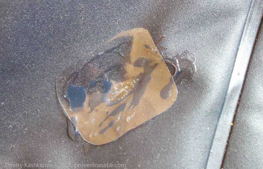 Тут началось непонятное. Уголки заплатки вдруг начали скручиваться в обратную сторону – от поверхности кровати. Пришлось принимать меры – подмазывать краешки и прижимать их на место.