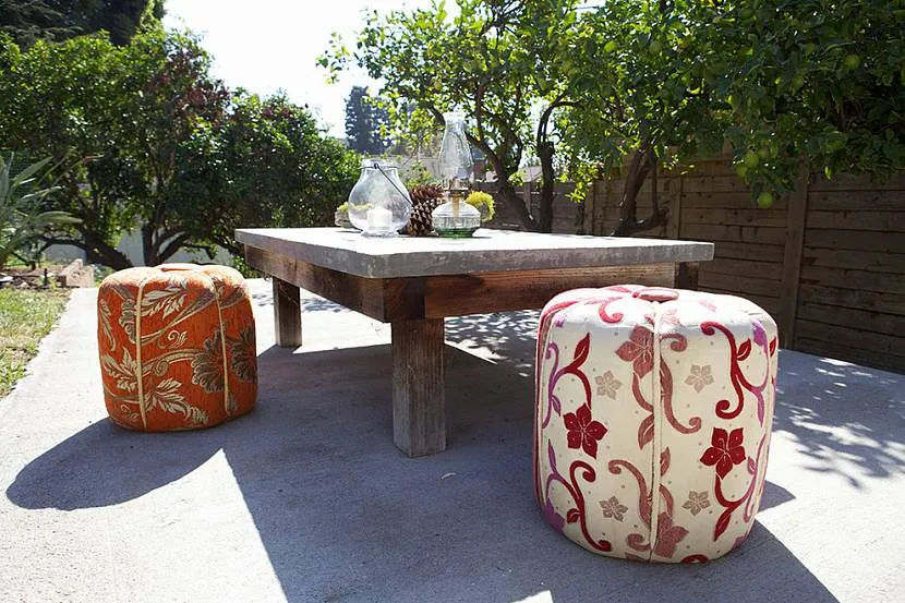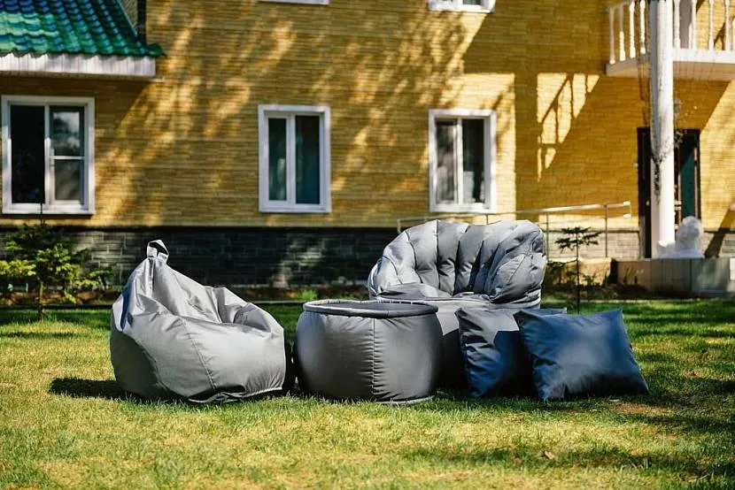 Мягкая мебель для сада — кресло-мешки, столик, подушкиИсточник partytime78.ru