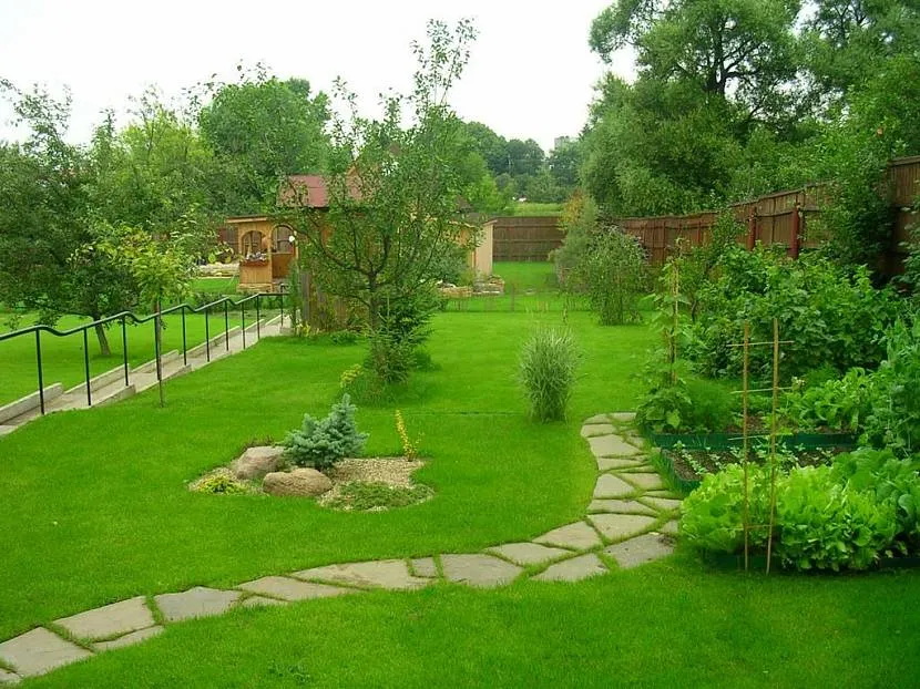 Ландшафт сельского дворика не должен быть четко поделен на отдельные квадраты. Все части участка сливаются воедино, плавно перетекая друг в друга. Но все равно определенное условное деление на зоны должно присутствовать.