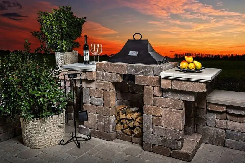 Фундамент для огневой точки в зоне барбекю делается с выкапыванием ямы глубиной не менее 25-30 см. Яму засыпают песком, потом щебнем, шлаком. Затем по опалубке с арматурой заливается бетоном. Получится что-то похожее на «колодец». Его внешние стенки можно задекорировать диким камнем или декоративным кирпичом.
