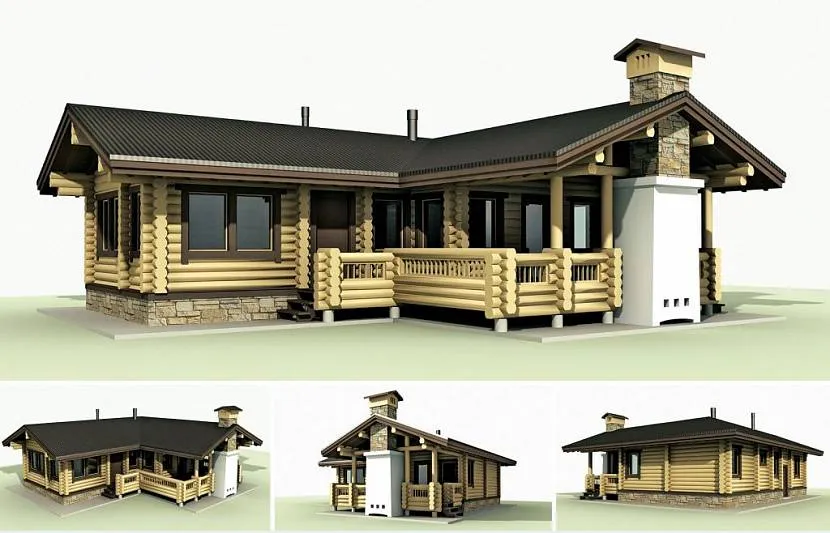 Угловая форма бани, совмещенной с террасой