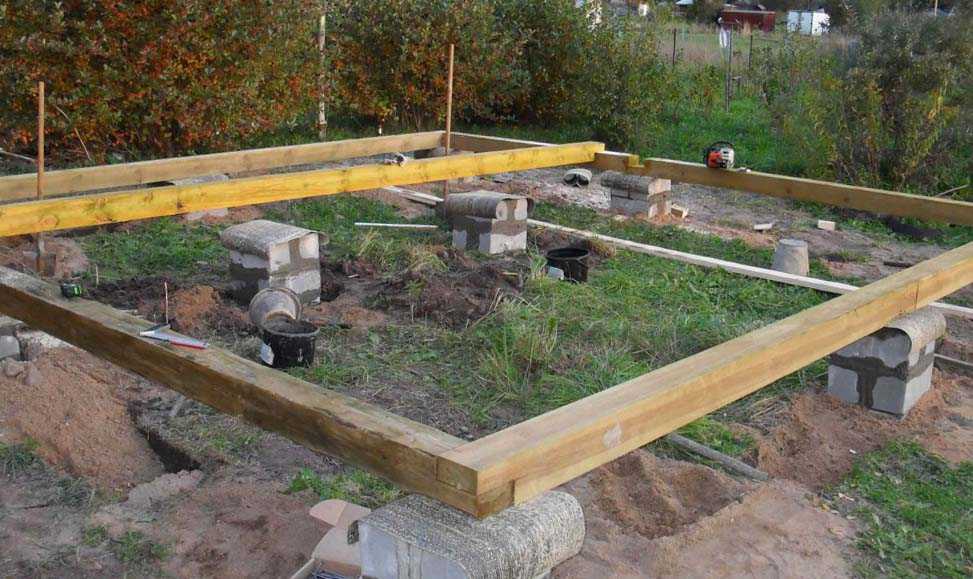 . Если в плане геологии обстановка на территории вполне приемлемая, можно остановить выбор на столбчатом основании. Допускаются разные варианты: вы можете использовать монолитные столбы, бетонные блоки (довольно легкие), глиняный кирпич. -