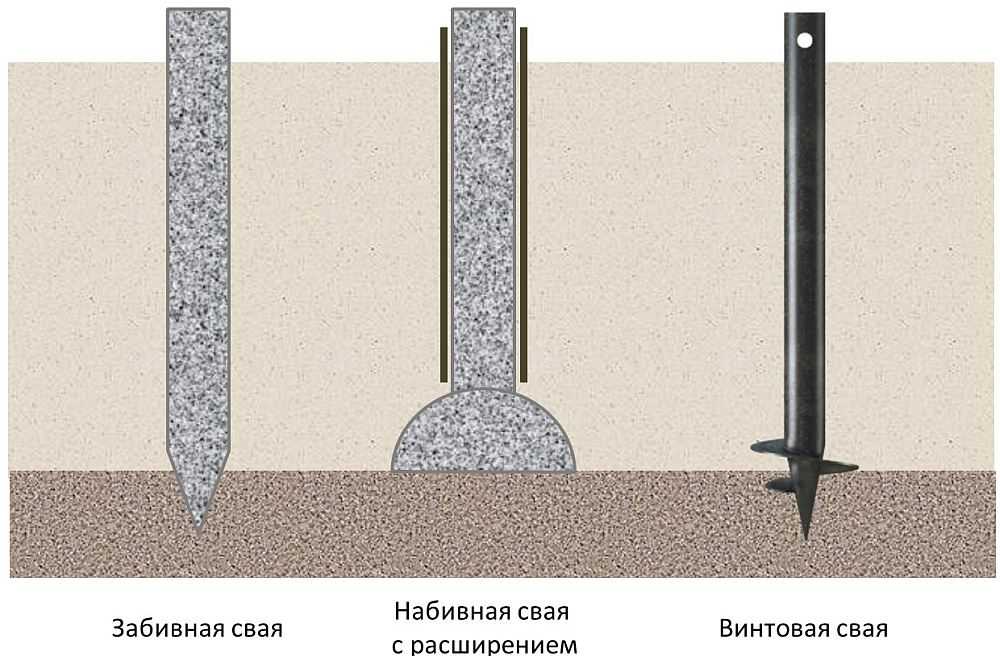 Забивные опоры представляют собой столбы (деревянные, металлические, железобетонные), которые с помощью специальной техники вводятся в грунт на глубину промерзания земельных масс. Чтобы правильно выбрать тип силовых элементов, необходимо рассчитать проектные нагрузки и сопоставить их несущей способностью грунта.