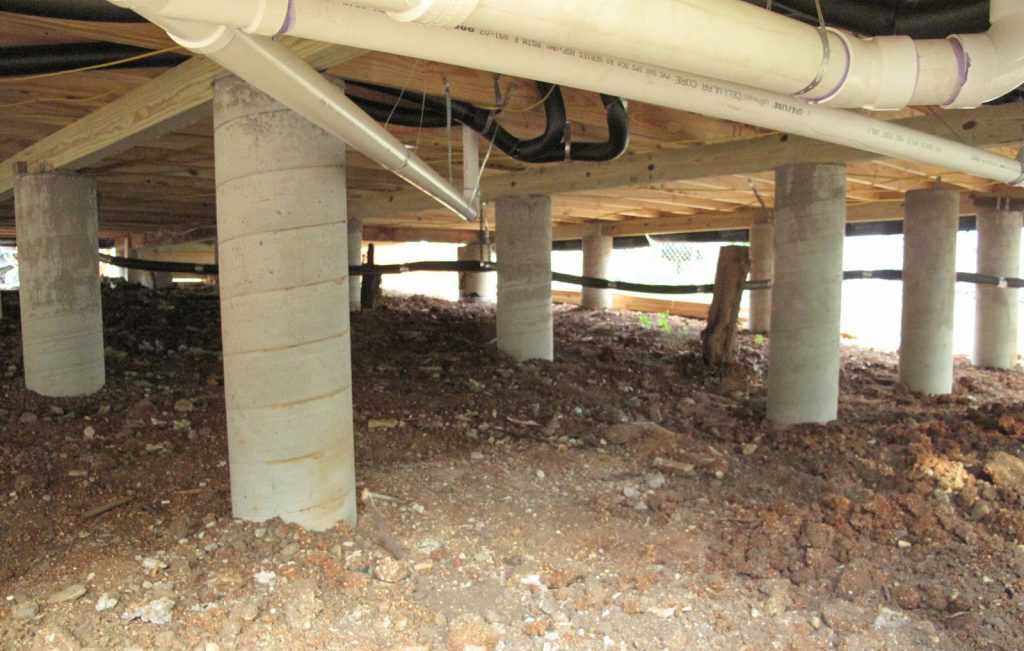 Сваи не дадут перекос постройки независимо от изменения температур, промерзания почвы, увеличения влажности и других негативных воздействий окружающей среды. Этого нельзя сказать о столбчатом основании. Элементы начнут гулять, часть может потрескаться, понадобиться реставрация, а это дополнительные вложения.