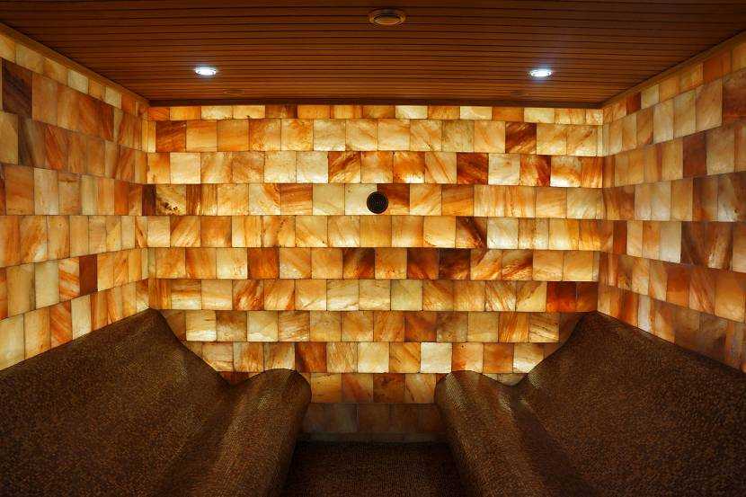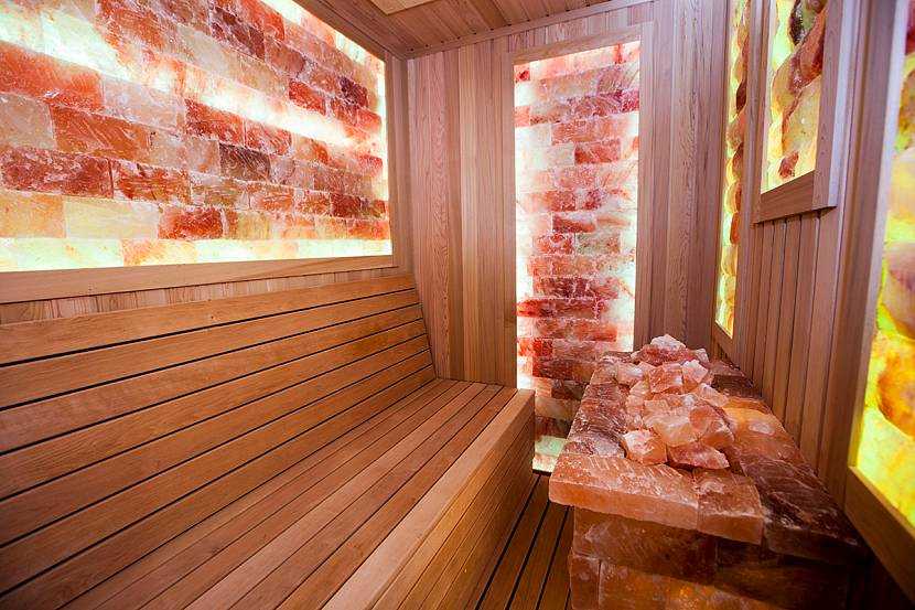 Помимо декоративной облицовки, в подобных местах могут использоваться специальные соляные лампы для получения дополнительного терапевтического эффекта.