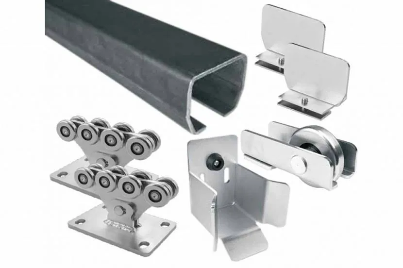 Роликовая каретка. Конструкция состоит из нескольких опорных роликов, которые прикрепляются к швеллеру. Эти изделия позволяют перемещать полотно вдоль прямой линии. Существует несколько типов кареток, так как они рассчитываются под конкретный вес полотна. Основным материалом выступает металл, но некоторые производители используют при их изготовлении специальный пластик.