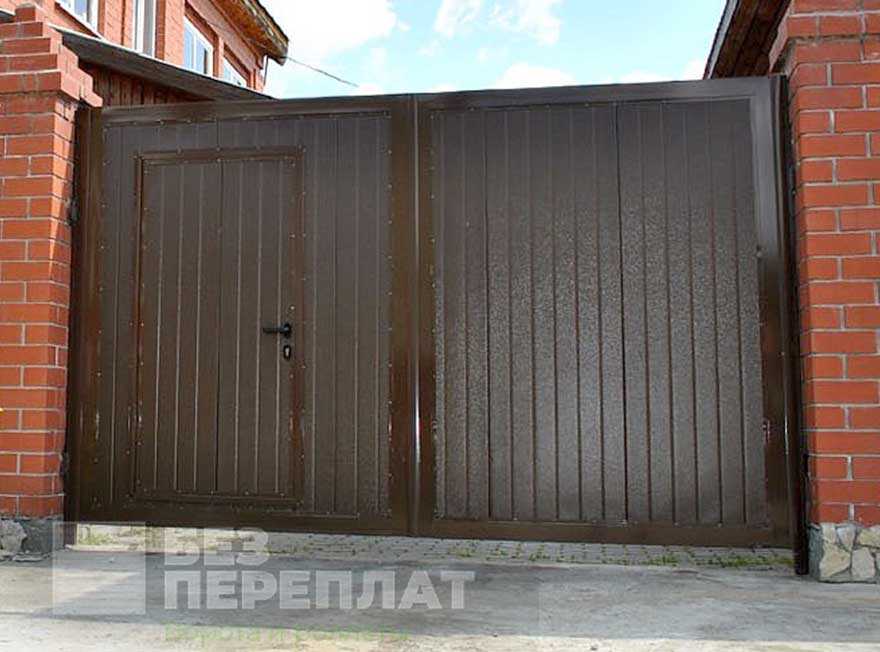 Распашные ворота с калиткой в створке и заполнением из сэндвич-панелей