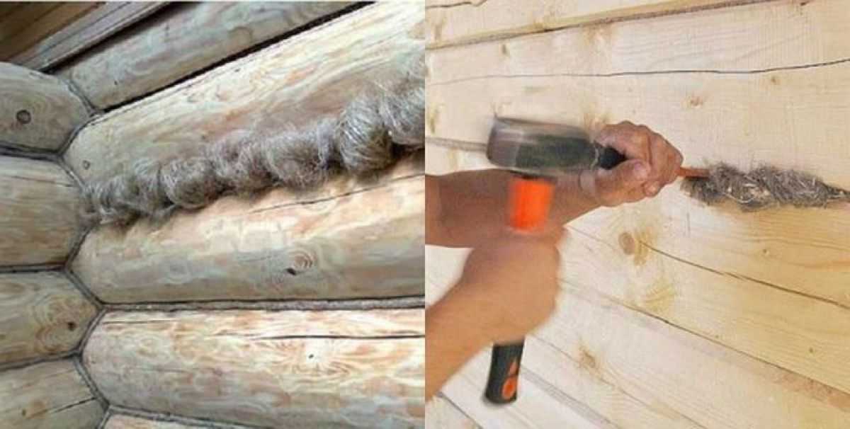 Существует два способа конопатки: «в растяжку» и «в набор».