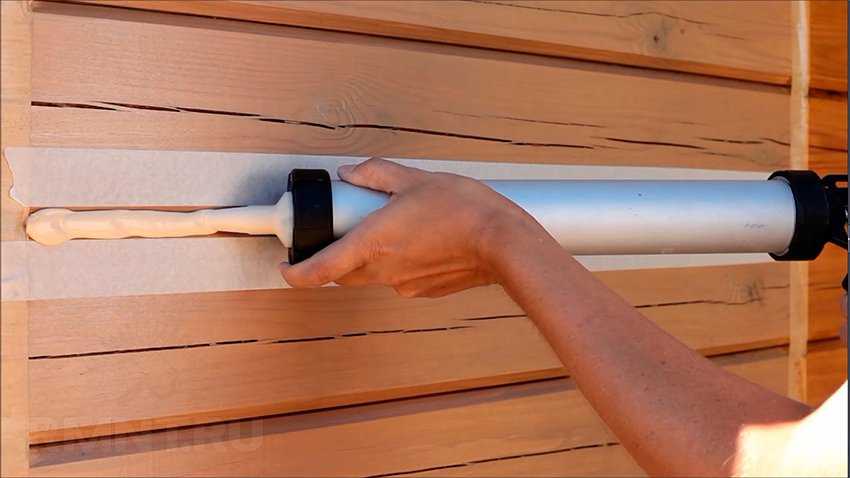 При выборе герметика в щели сначала укладывают теплоизолирующий шнур из полиэтилена либо из джутового волокна. Это позволит уменьшить расход основного средства и повысить теплоизоляционные свойства древесины. И затем поверх шнура наносят герметик во влажном состоянии толщиной слоя 4-6 мм.