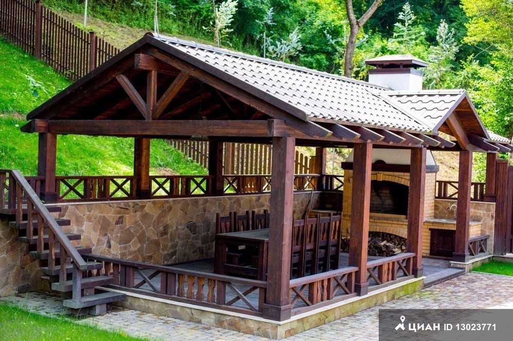 3. Закрытые – представляют собой небольшие деревянные или кирпичные домики. Внутри очень часто устанавливается камин, печь или мангал, выделяется зона кухни и непосредственно помещение для отдыха.