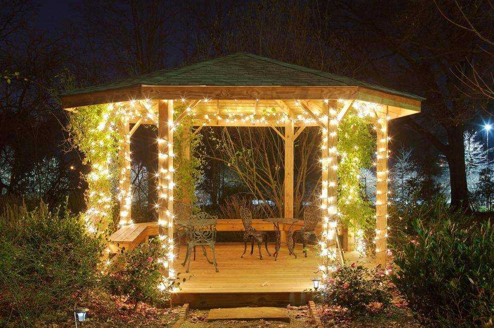 Некий трепет у меня вызывают беседки с освещением, которое может быть как декоративным, так и строго практичным. В любом случае вопрос света в помещении очень острый, особенно когда вокруг внезапно наступает ночь, а отдых еще не планирует заканчиваться вообще.