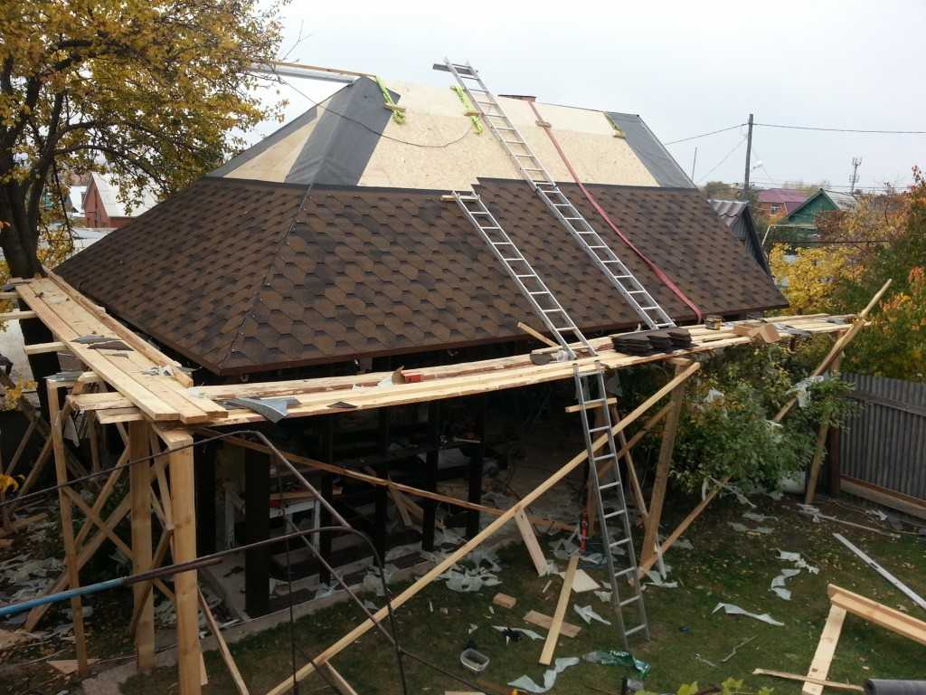 В зависимости от типа материала кровли, его материал может быть уложен непосредственно на каркас, либо подшиваются плитами ОСП. Профнастил или металлочерепица в этом не нуждаются, а при использовании мягкой черепицы это необходимо.