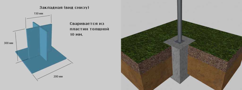 К стойкам необходимо приварить металлические подпятники и залить бетоном, установив стойки на место установки.