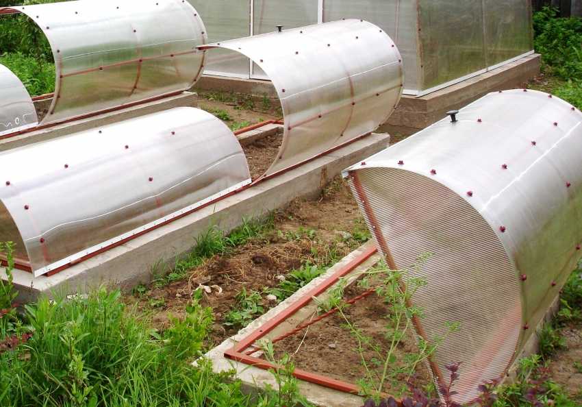 Лидером в этой сфере являются небольшие теплицы с металлическим или пластиковым каркасом, покрытые поликарбонатом. В продаже представлены 2 вида: