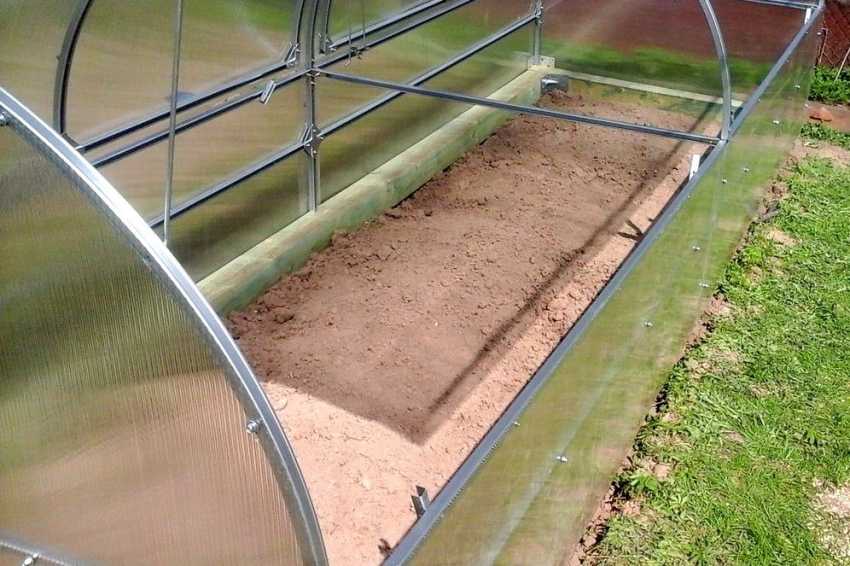 Конструкция углубленного парника из поликарбоната позволяет обустроить внутри теплую грядку