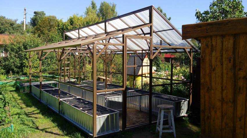 а как насчет стального каркаса, с покрытием из поликорбаната. не очень дешево, но и надёжнее чем то же дерево, которое гниёт со временем. проверили на своем опыте, да и урожай получше будет.