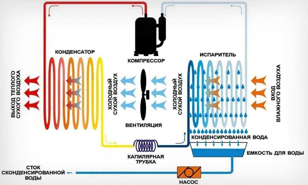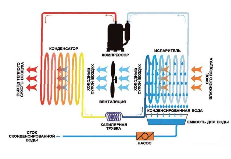 Как работает осушитель воздуха, Вы можете увидеть на этой схеме: