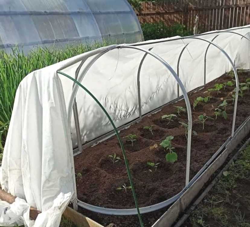 В теплое время года в качестве укрытия небольшого парника можно использовать нетканое полипропиленовое волокно — спанбонд, который хорошо пропускает свежий воздух, но в то же время позволяет контролировать микроклимат