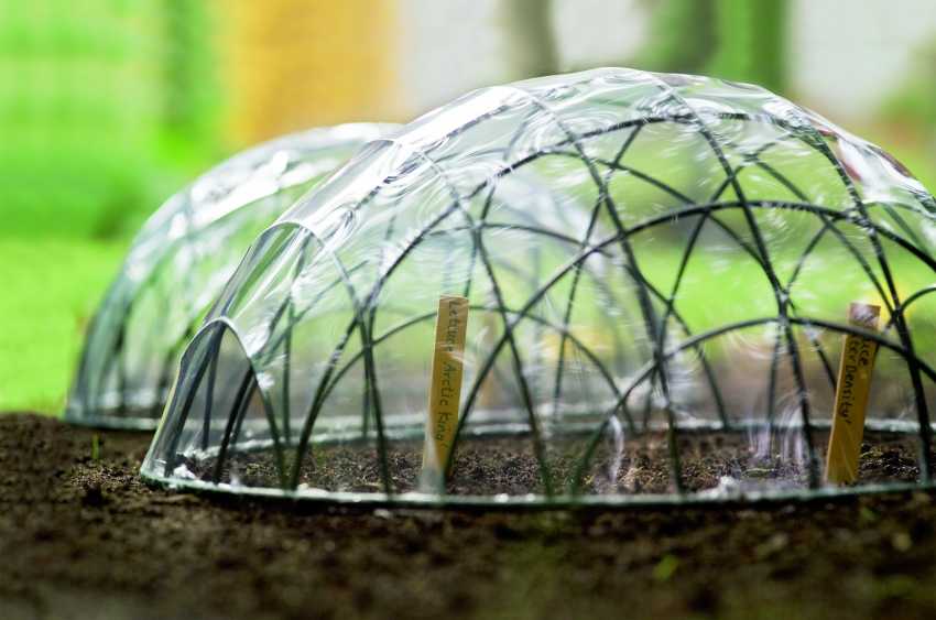 Мини парники для проращивания семян в открытом грунте можно создать, используя проволоку, пленку и строительный фен для закрепления полиэтилена