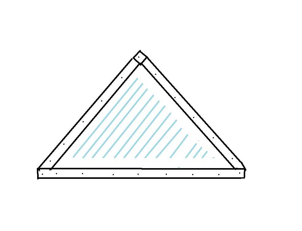 Шаг 6. Вырезаем два куска полиэтилена треугольной формы по размерам такие же, как и боковые стороны рамы. Приколачиваем их мелкими гвоздиками на боковые стороны.