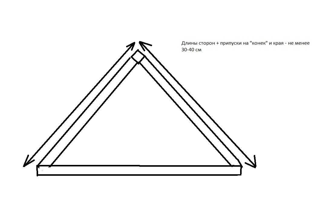 Шаг 5. Теперь каркас необходимо обтянуть пленкой так, чтобы она могла подниматься для проветривания насаждений. Для этого отрезаем нужный нам кусок укрывного материала, несколько больший по длине суммы двух боковых частей парника.